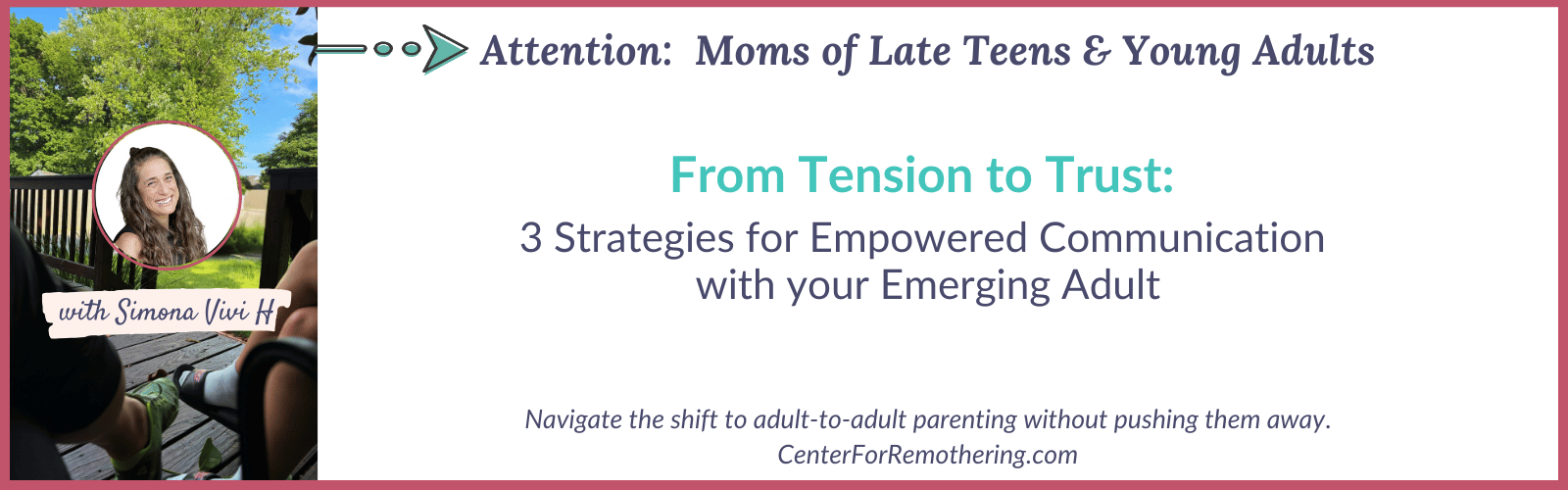 Hi, I’m Simona Vivi H, head coach at The Center For Remothering and founder of reMothering.org. I specialize in working with adult daughters of emotionally immature mothers... and many of the adult daughters I work with are ALSO mothers of emerging adults.